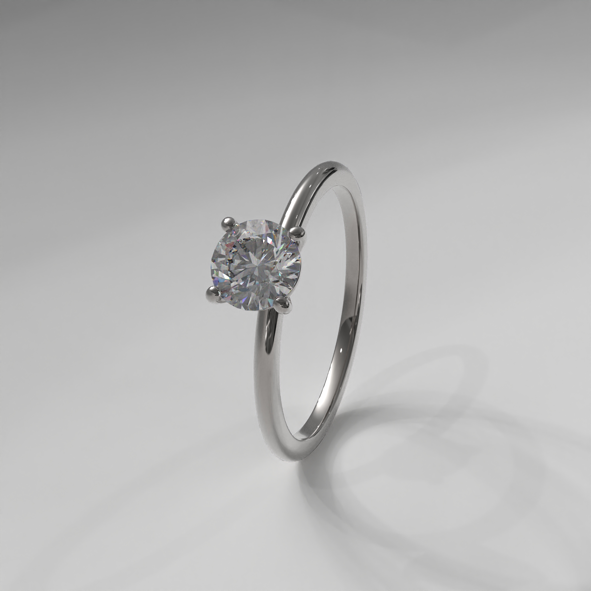 Solitaire round ringavailable in platinum, palladium silver, yellow, white, and rose gold. A timeless symbol of love and elegance, crafted for lasting brilliance and durability.